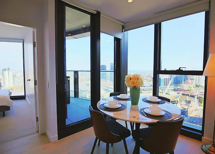 Glamorous 2Br Apt With Ocean & River Views & Free Parking est située au centre de Ville de Melbourne et dispose d'un jacuzzi, d'un sauna et d'une piscine couverte. Vous pourrez visiter Aquarium de Melbourne à 13 minutes de marche.